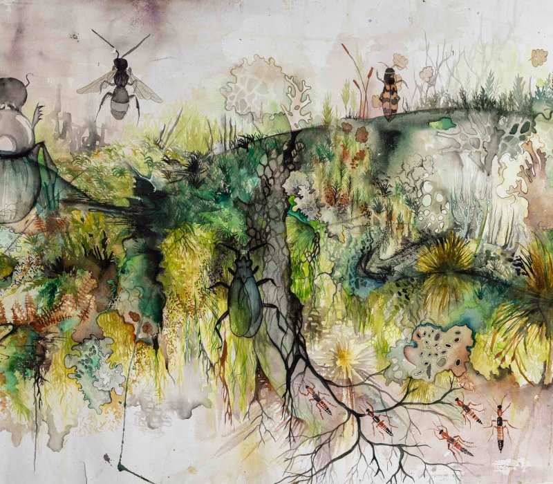My journey to this art- science field began when, as a young environmental old growth forest activist, I realised the power of art to inspire, bring people together and educate on complex ecological science. Through this, I began to embody a visual ecologistThis led to the co- development of books on microbes and mutualism, with the Small Friends Books team. Small Friends Books informed my practice of collaboration. These four books, developed over a decade, bring together an interdisciplinary team of artists, writers and scientists to produce books on mutualism and microbes. The iterative process and trust in other people’s visions and skills has taught me a lot about collaboration and has been infused in my practice going forward.