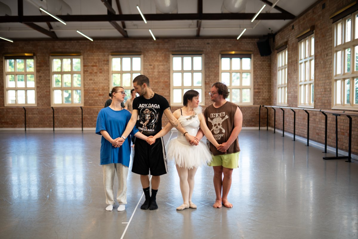 Our major focus is Scenes from a Swan Lake, our first large-scale contemporary work. The work was seeded during a Brisbane residency by collaborator Sinead who has dedicated her life to ballet training. She aspires to a career as a ballet dancer. Living with Down Syndrome means that traditional pathways for a ballet career aren’t open to her. She imagined staging Swan Like with GT and as we started to explore the idea, the project opened space for each artist to reinterpret Swan Lake through their own movement languages and emotional truths. We recently completed an intensive with Jo Lloyd, deepening the work’s structure and ensemble dynamics.