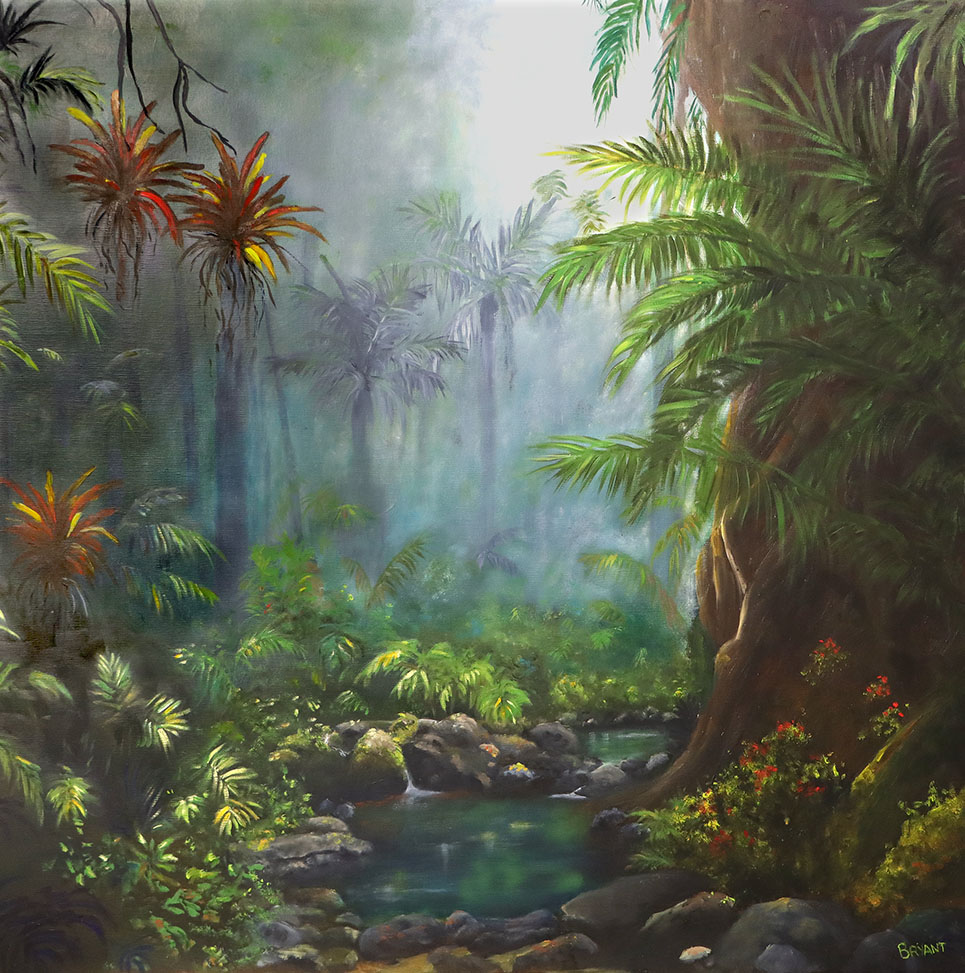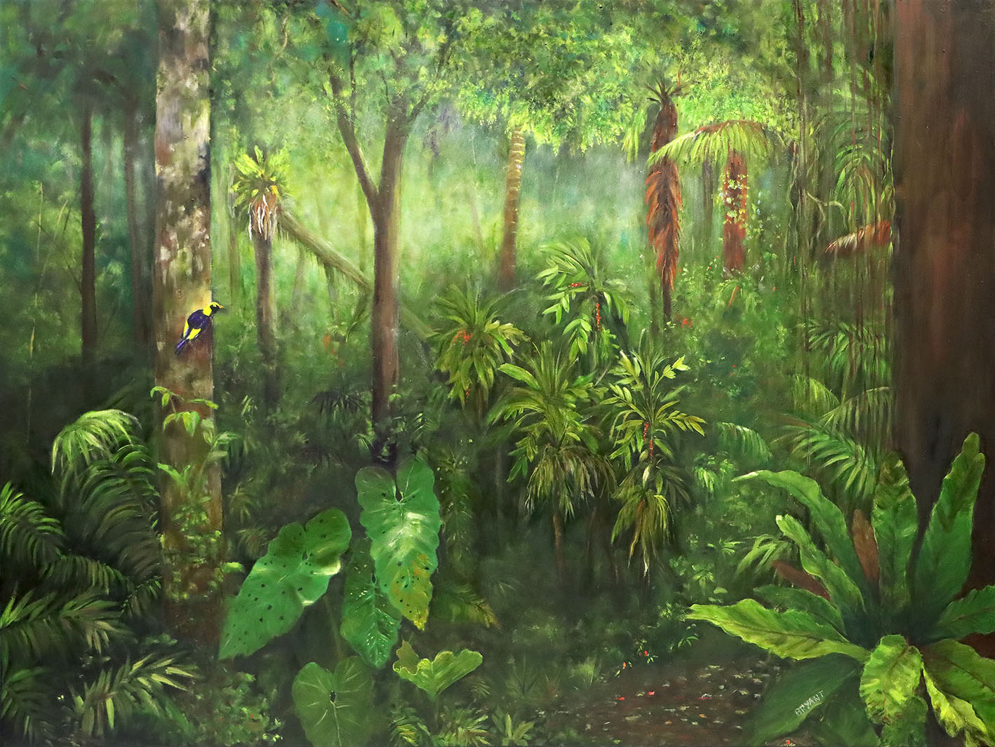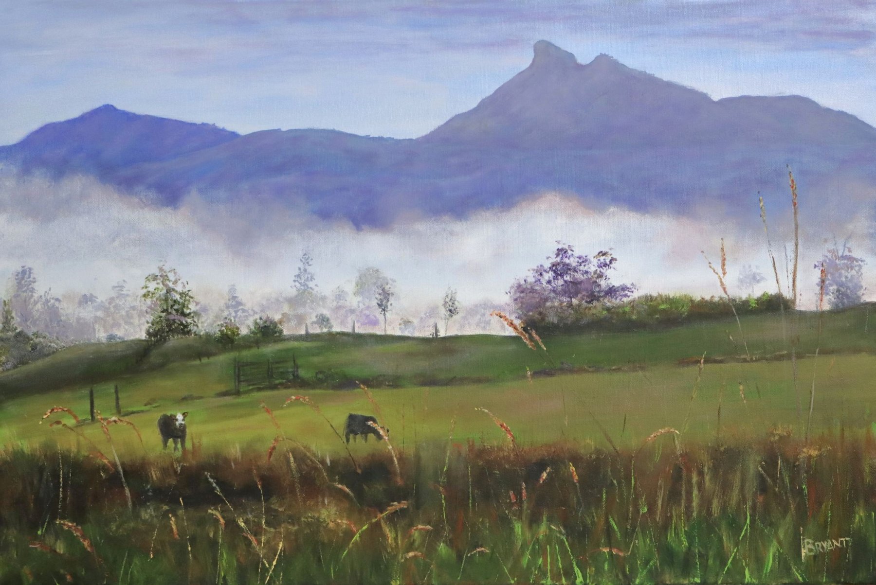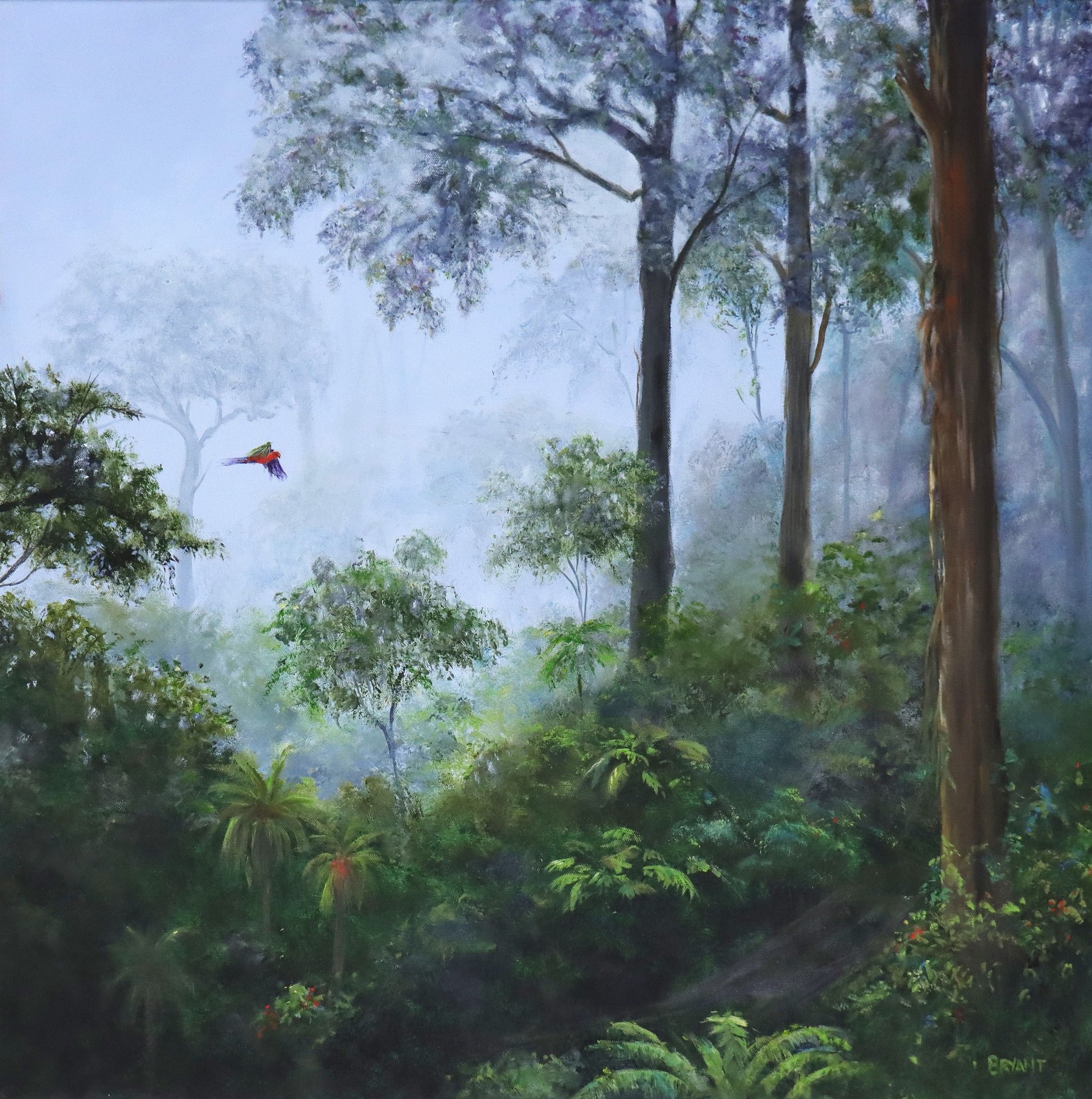 Brenda is fortunate enough to live in the Tweed Valley with views of the Border Ranges and Wollumbin. She spends a lot of time walking in the numerous subtropical rainforests in National Parks such as Mebbin, Couchy Creek, Binna Burra and Lamington. These rainforest are part of the Gondwana Rainforests of Australia – World Heritage listed. Brenda paints in and attempts to capture the peace and tranquillity of these rainforests, which she loves