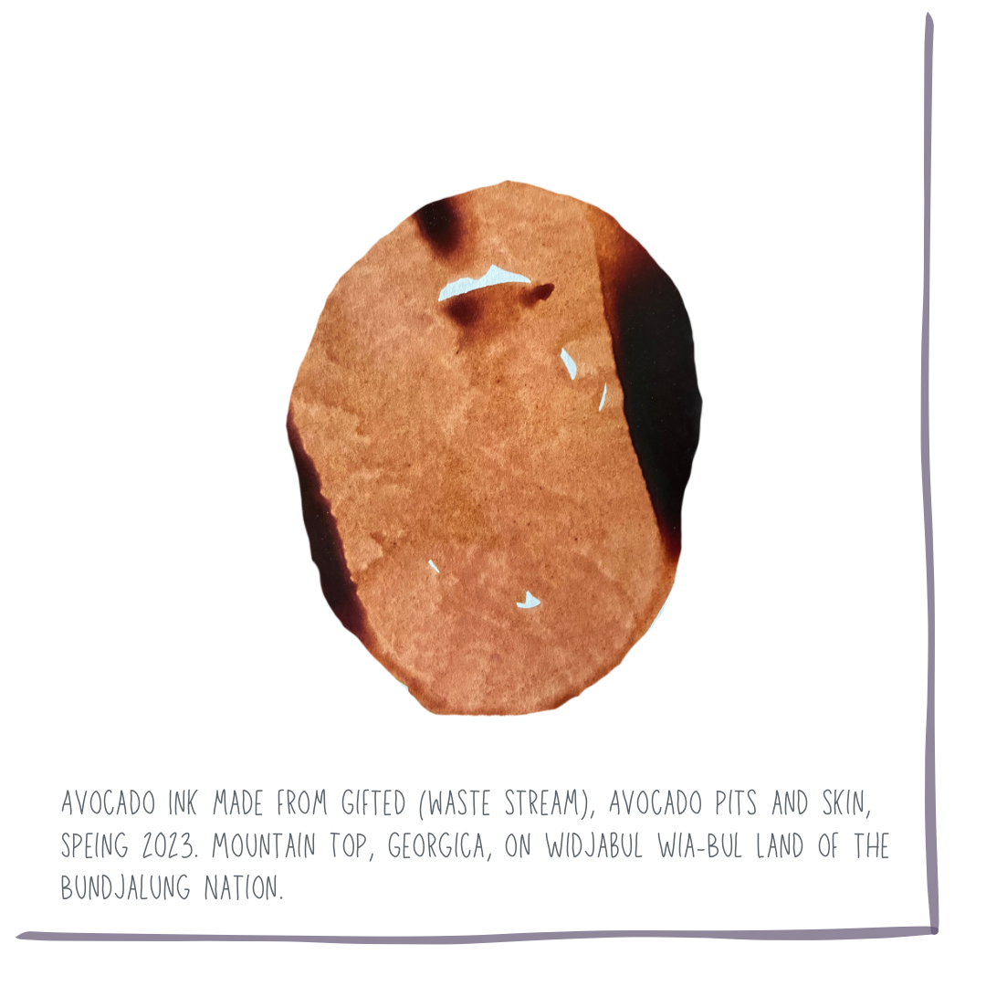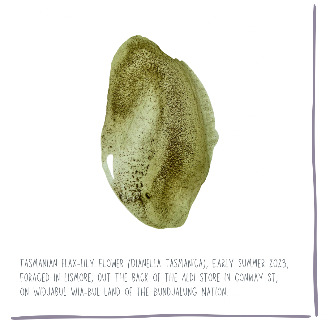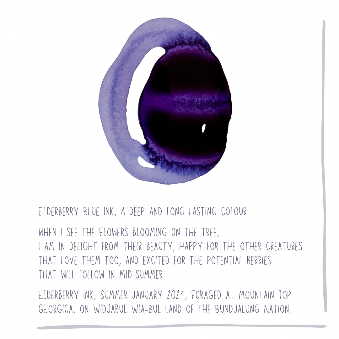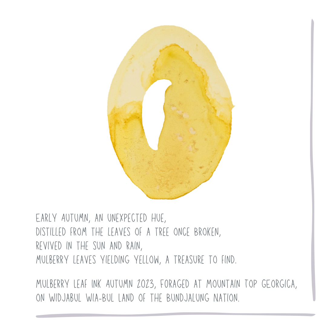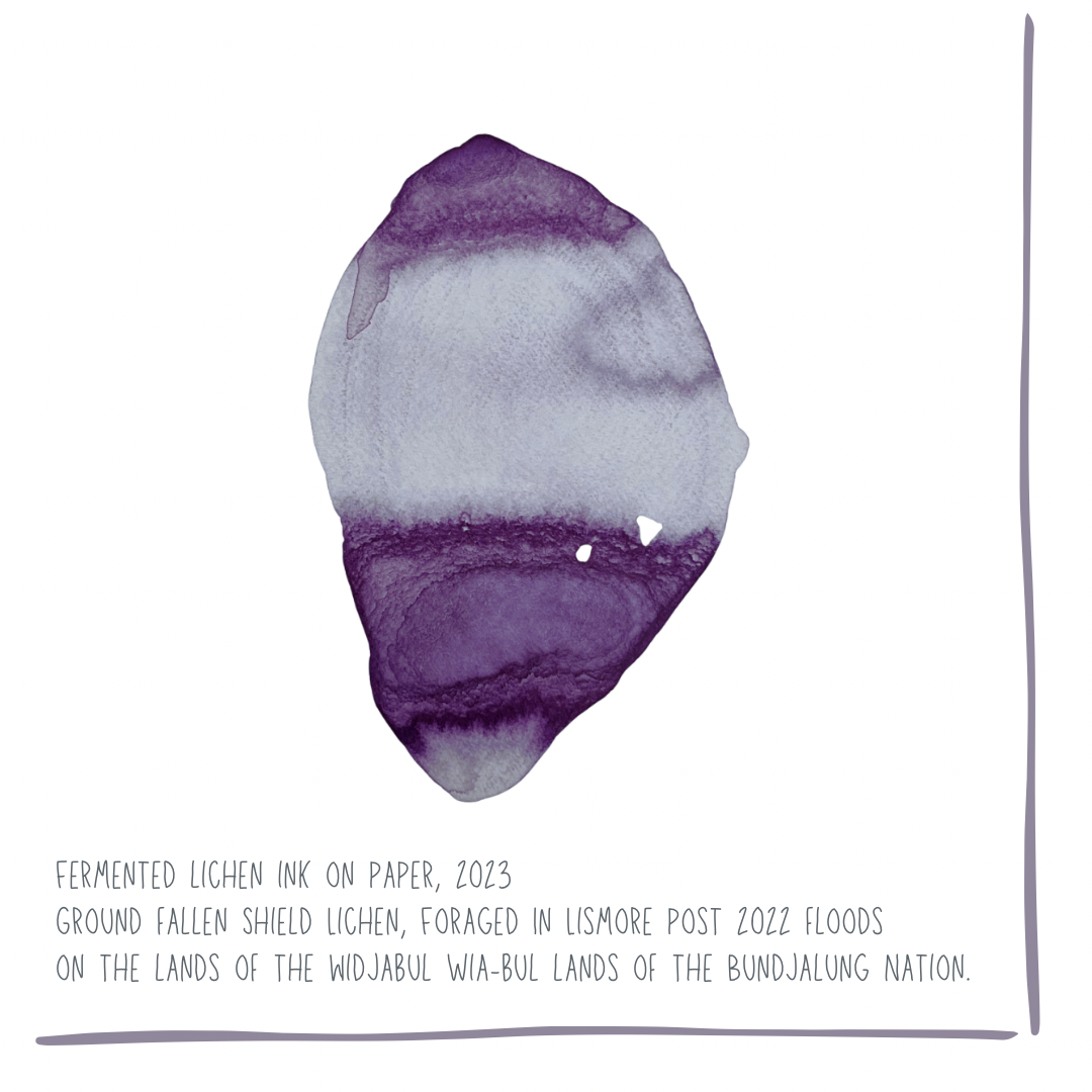 Her most recent solo exhibition Gather (2024) was a site-responsive work exploring sustainable foraging and collaborative engagement with the land through botanical pigment making and drawing, this project focused on multiple sites, including the Lismore Community Garden, the banks of the Breimba river (Clarence River in both Central and South Grafton) on Bundjalung and Gumbayngirr Countries. In 2023 and 2025, she undertook international residencies at The Watershed Art Studio in Galway, Ireland, deepening her pigment research and ecological inquiry, as well as undertaking a Postgraduate Certificate in Art and Ecology at the NCAD, Dublin, Ireland; continuing to evolve her practice committed to sustainability, environmental stewardship, climate camaraderie, and place-based collaboration.