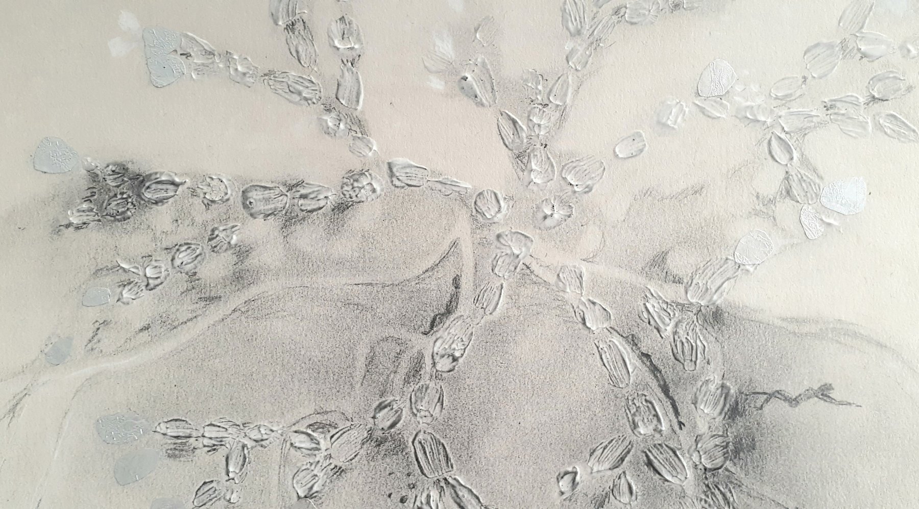 ‘My art practice like myself, is a work in progress, constantly changing and adapting to what life presents’. Symbolic and abstract in style she explores themes around human existence and relationships to the natural world, often mimicking the beauty and mystery in nature, experienced and felt whilst in the landscape.