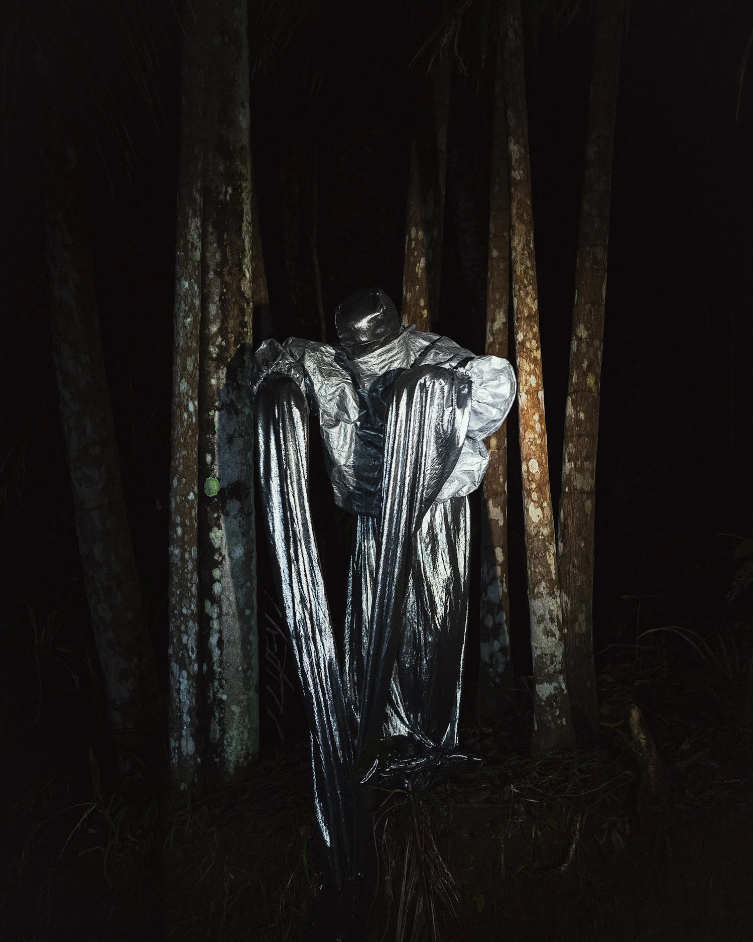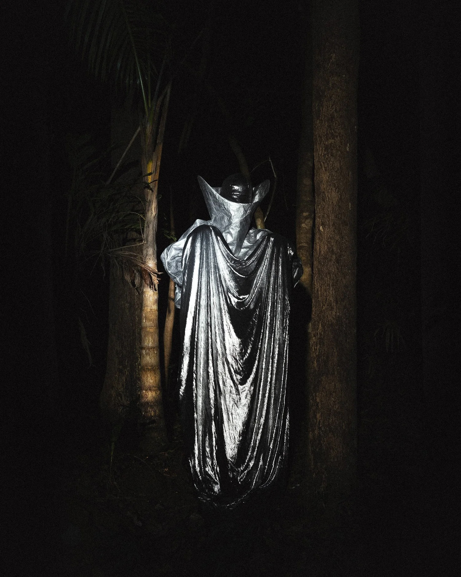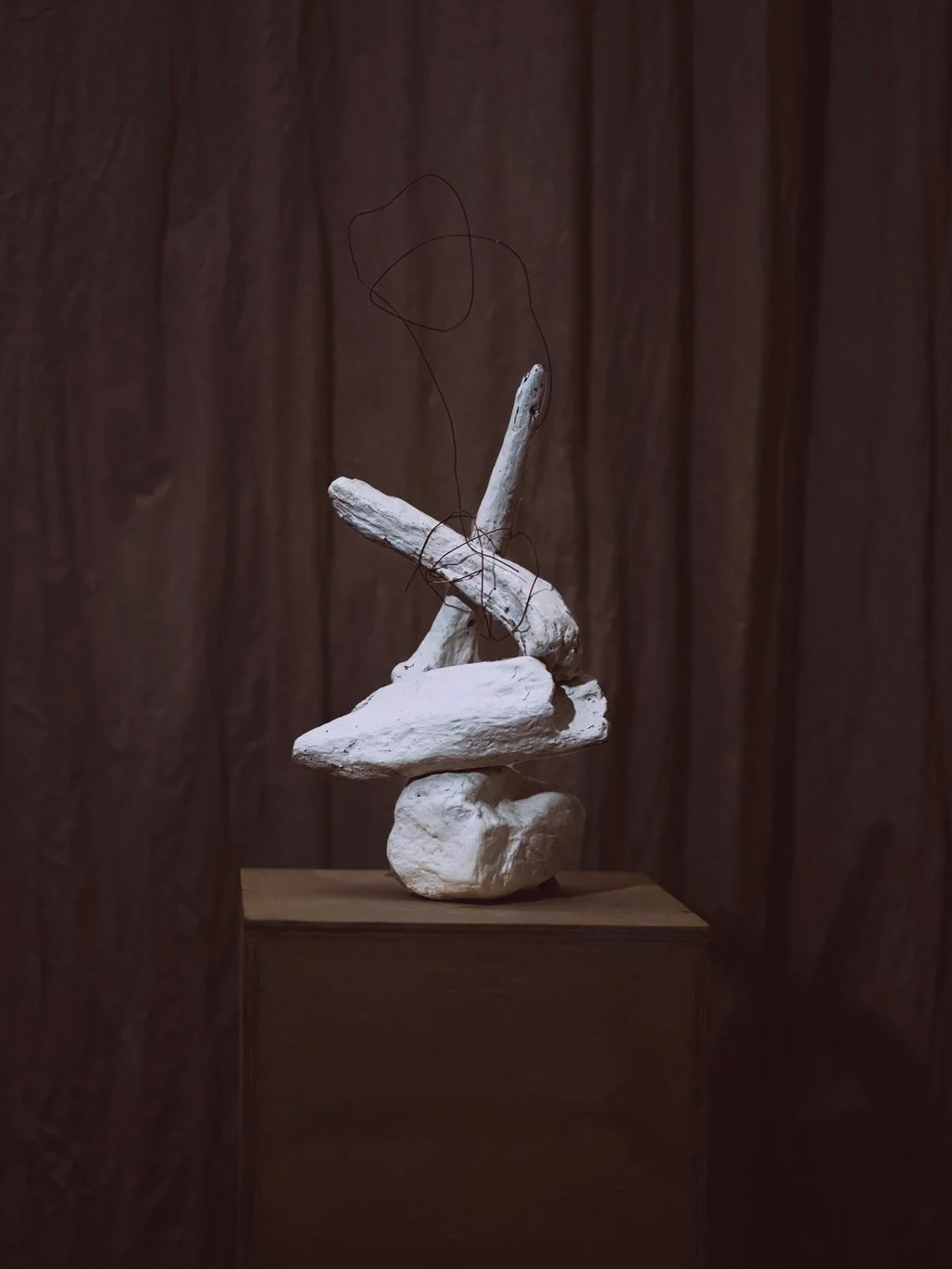 Garments and sculptural objects operate as conduits—artefacts of inhabiting and attuning to altered states of perception. Through these, Wilkin investigates how body, material, and landscape entwine to unsettle the boundaries between the visible and concealed. Her practice is a continual act of world-making, where the creative impulse is both portal and process, guiding the viewer toward resonance with elemental forces that are deeply felt yet resist capture or containment.